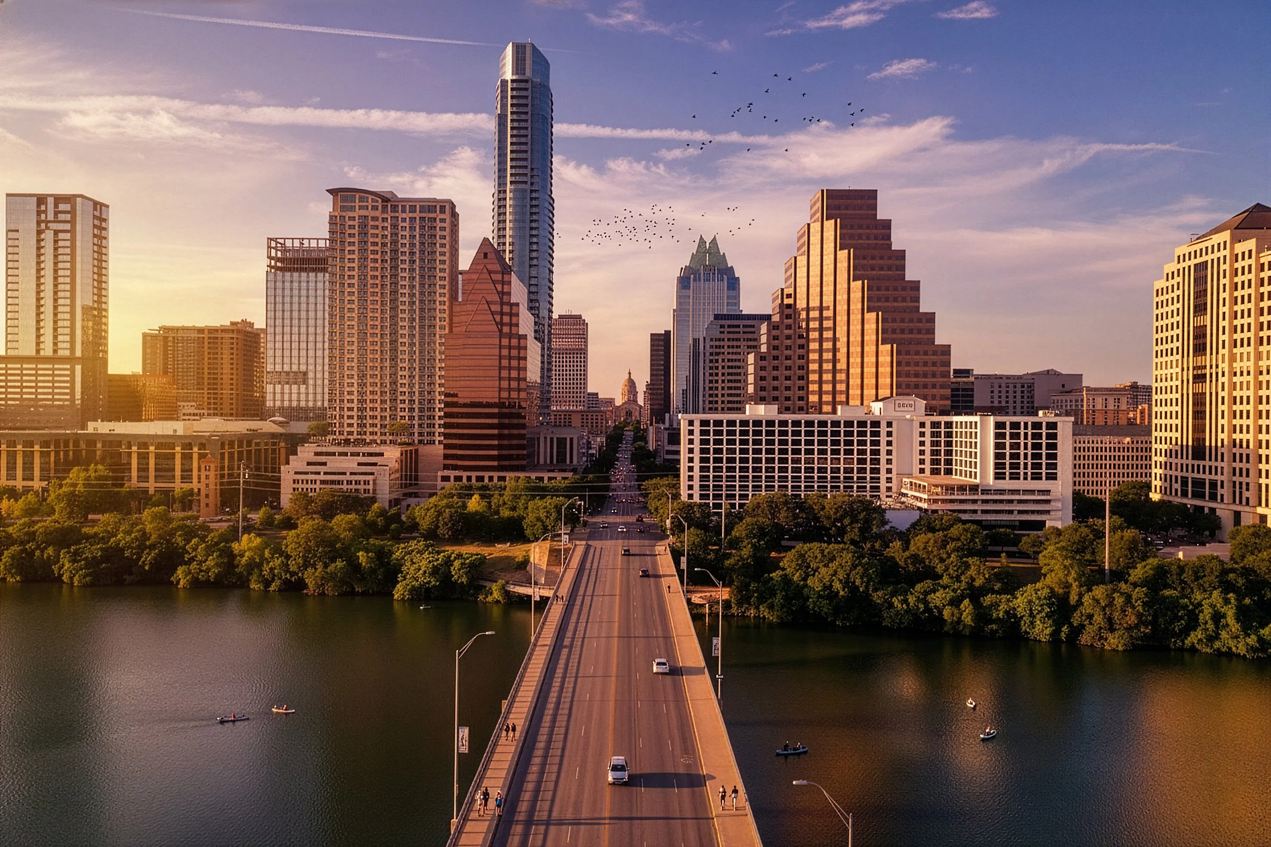 At dusk, the Congress Street Bridge draws visitors from around the world to witness the city’s renowned urban bat colony, a reminder that nature and culture coexist here in unexpected ways.